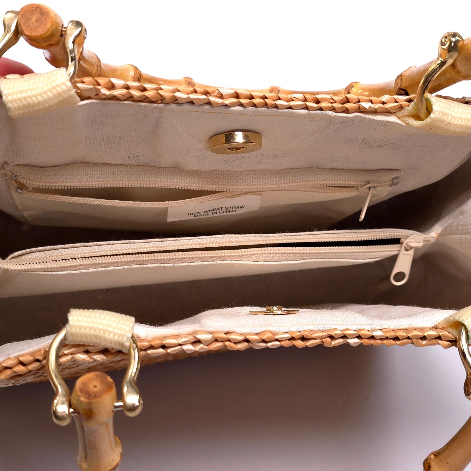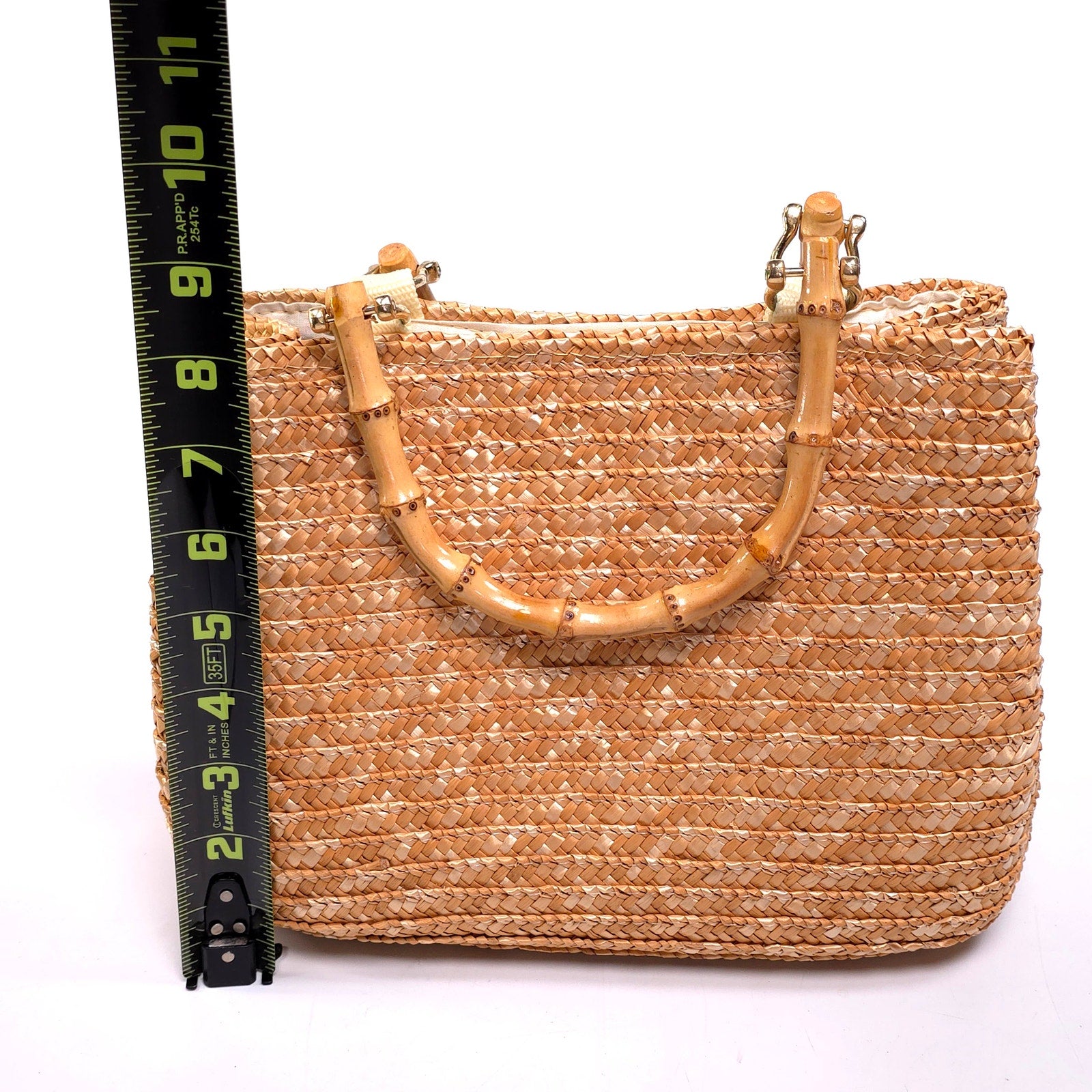 Woven Straw Handbag Purse w/ Bamboo Handles Raffia